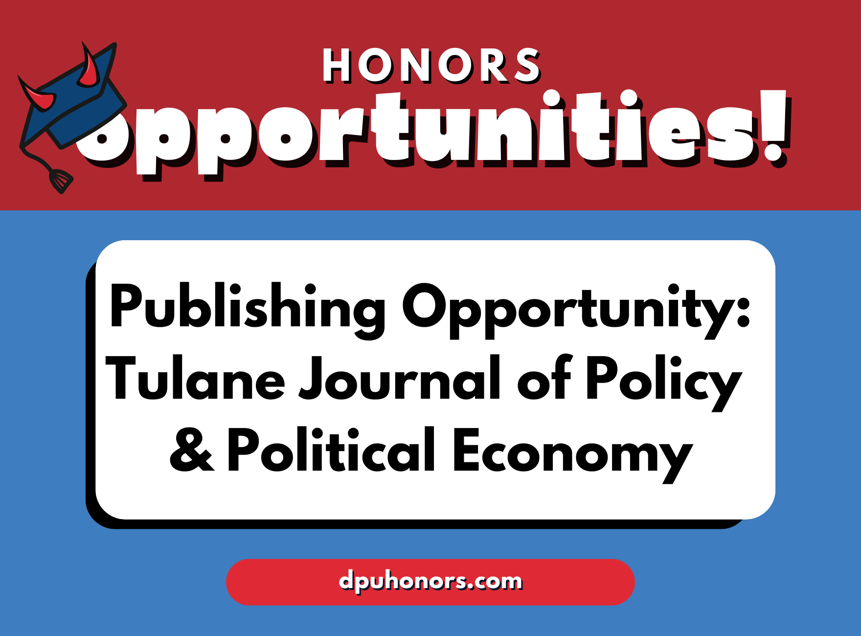 The Tulane Journal of Policy & Political Economy is looking to publish work by DePaul Honors students!
